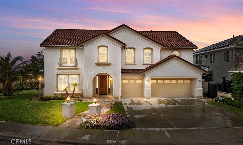 Located in the highly sought after Pointe East Lake community of Yorba Linda awaits your new home located at 19855 Via Natalie! This beautiful 4 bedroom, 3.5 bath home is a spacious 4,111 sq ft property, nestled at the corner of the cul-de-sac that showcases panoramic views that stretch as far as Catalina Island. Upon entering you’ll immediately feel at home as you step into the formal living space and formal dining surrounded by luxury ceiling molding and large windows that allow the natural light to soak into the space. The natural sunlight is extended into the beautiful family room with floor to ceiling windows, cathedral ceiling, fireplace and built in shelving. This open concept flows right into your airy u-shaped kitchen that features plenty of counterspace, island with seating, bar sink, granite countertops and recessed lighting. Just situated off the family room is a main floor bedroom with an ensuite ¾ bath, as well as a laundry room with side entrance, half bath, and the roomy 3 car garage. Make your way upstairs to find 3 bedrooms and a full bath as well as a large bonus room that can easily be converted into a fifth bedroom, office, gameroom, or the walk-in closet of your dreams.
