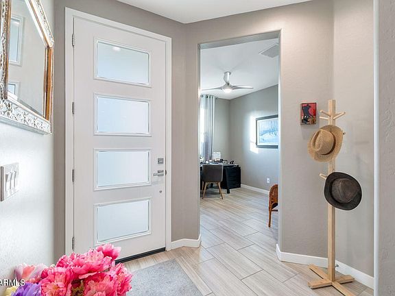 Here is a home that will appeal to your buyer who is looking for space for their toys or just wants a large extended 3.5 car garage for their hobbies. The RV gate allows great access to the professionally done backyard with 14x 22 Pergola with commercial misters, beautiful lighting and fan to move the cooler night air while enjoying your meal off the natural gas BBQ. You can even have your favorite beverage around the natural gas fire feature and have great views of the common area and lights below! Inside, the home offers al the tastefully decorated space your discerning buyers are looking for. This is a 3 bedroom 2 bath home with front office area and upgrades galore! Custom window treatments, beautiful wood slat accent walls, and custom paint all add to the calming ambience of this home. If you are looking for a very well maintained home without waiting for a new build, you must see this property! It has so much to offer! There is a list of upgrades in the doc tab for your buyer read. Don't wait, be the first to submit your offer!