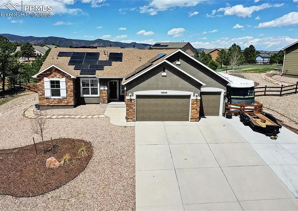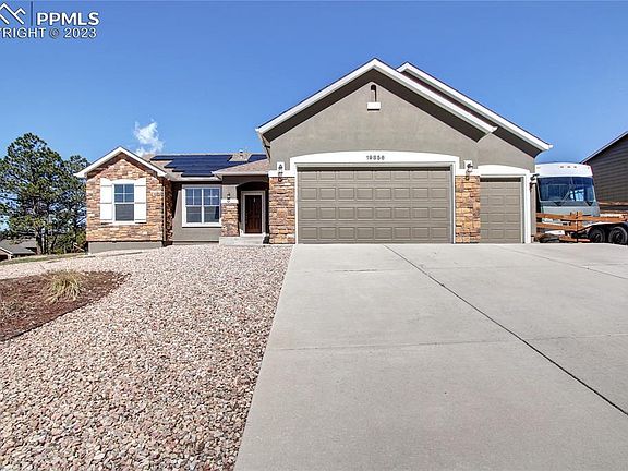 Amazing opportunity to live in beautiful Monument, Colorado! Sitting on over a half acre lot, the back yard is fenced and private, with a great patio, mountain views, plenty of trees and lawn to play on, as well as backing up to a hiking/walking trail. If you are looking for main level ranch style living, then we have the perfect home for you. With 5 bedrooms and 3 full bathrooms, this incredible open floor plan is perfect for entertaining, with formal dining, hard wood floors, gar fireplace in living room, and a very functional floor plan. The main level consists of a beautiful kitchen with slab granite counters, island with bar top seating, SS appliances, double oven, and walk in pantry. Additionally on the main floor, you have an open and inviting living room, 2 bedrooms, a full bath, laundry and mud room, as well as a large master suite with a 5 piece master bath, and walk-in closet. In the gorgeous finished basement you will find 2 more bedrooms, one with a walk in closet, a full bath, a spacious family room with gas fireplace, and a bonus area with a wet bar rough in, as well as an awesome theater room complete with surround sound, and a large projection screen. Plenty of parking with your 3 car attached garage, additional driveway and parking for an RV or other toys, and No HOA. This perfect location is within a few minutes of the desirable Lewis Palmer D-38 schools, is close to numerous hiking trails, and has easy access to I-25 and is within 30 minutes of the Denver Tech Center, 15 minutes to the Air Force Academy, and 20 minutes of downtown Colorado Springs. Welcome home!