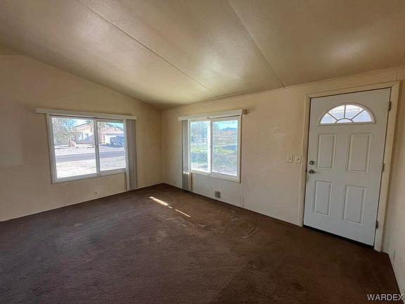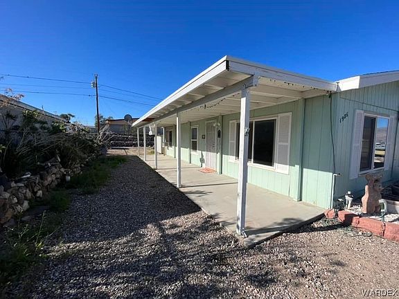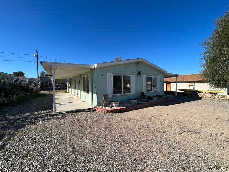 Looking for that clean manufactured home in one of the most sought-after communities in Bullhead City? Come check out this 954 sf 2 bed + den, 2 full bath home that is ready for immediate occupancy. This home offers exceptional curb appeal with its covered front patio, covered car port, circular driveway, & side parking for your boat or trailer. You will have plenty of parking for your water & desert toys with this home, as well as having a pool sized backyard space. Step inside & be greeted by a spacious living room area with adjoining kitchen with breakfast bar seating, gas range, casual dining space, & plenty of cabinets. The primary bedroom is tucked away & features a walk-in closet, while the primary bathroom has been updated with a solid surface vanity & tiled walk-in shower. The 2nd bedroom, as well as the 3rd bedroom/den area gives you plenty of room for the family. There are ceiling fans throughout the home, an in-house laundry area, as well as a storage shed which rounds out the great features this property offers. The perfect 1st time home buyer property, vacation rental, or full-time residence. Check this home out today as it will certainly check the boxes.