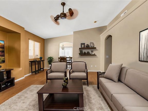 The interior boasts an open living room adorned with wood laminate flooring and a custom ceiling fan, perfect for family gatherings. The gourmet kitchen is equipped with a new microwave, refrigerator, electric oven, and a stainless steel dishwasher. The attached dining area, with ample space for a dining set, opens to the backyard through a sliding glass door. The primary bedroom features vaulted ceilings and a private yard with additional privacy fencing. The en suite bathroom includes dual sinks, a new tub enclosure, valve, and showerhead. Bedrooms 2, 3, and 4 are generously sized with high ceilings, tile flooring, and ceiling fans. The guest bathroom has been recently updated with a new tub enclosure, valve, and showerhead. For added convenience, the home includes a laundry room with a washer and dryer.
