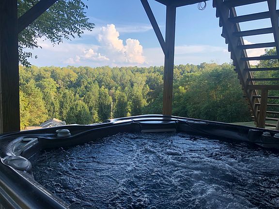 Quiet area home with beautiful wood ceilings on 2 Acres with beautiful wood ceilings, full unfinished drive through basement, metal roof, hot springs spa, covered rear deck with view, two carports, large covered RV pad, and storage building.