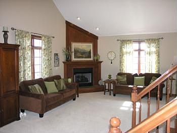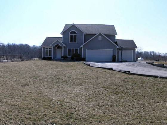 Listing agent: Diane Caudill, Call 260-469-4069 for information. Excellent 2 story country home on FINISHED WALK-OUT BASEMENT. Four acres of land to enjoy; add a pond, garden or just appreciate it in its natural state. Voloume ceiling great room has a FIREPLACE w/gas log, mantel & ceramic hearth. You'll love the expansive PORCELAIN TILED kitchen and casual dining area, so big you can invite the whole crowd. Enjoy the center island w/gas cooktop, B/I wine bar, (plumbed for a sink), pantry & loads of counter space. A cozy main floor den w/built-in desk/shelves is ideal for the computer desk or as a craft or children's toy area. Owners suite includes huge W/I closet with built-ins, bath w/JET TUB, 2 sinks & double shower. Upstairs utility rm features deep tub, hanging rack, washer & dryer w/pans. Both 2nd & 3rd BRs have good sized W/I closets. Walk-out basement w/easy clean ceramic tile floor has sliding door to ample patio area & a full bath w/double shower. Extra bsmt room w/built-in counter could serve as craft, exercise or play room. 3 Car garage.