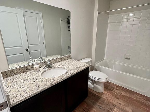 One year old 2 car garaged home w/ 3 bedrooms, 3.5 bath features granite countertops and stainless steel appliances in the kitchen, along with the recessed lighting and an oversized island, creating a modern and functional space for cooking and entertaining. The 9-foot ceilings on the main level add to the feeling of spaciousness, and the luxury vinyl plank flooring is both durable and attractive. The open floor plan allows for easy flow between rooms, or the outside included deck. The connected technology package provides modern amenities for convenience and comfort. Backard is facing greenery. Utilities are the responsibility of the tenant. No pets.