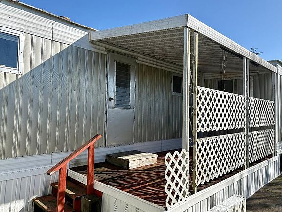 If you're looking for a cozy little place to call home, reduce expenses and simplify life, this could be just what you've been waiting for. A pop-out ads space and dimension to the living room, and with the wood stove it could be the perfect spot to cuddle up and kick back, day or night. The kitchen has all you really need, even a little dining nook. There's a great covered deck, extending your living area outdoors, even on our rainy days. At this price, it's hard to go wrong. Call your favorite Realtor and come take a look today! This is a 55+ park, and park approval is required.