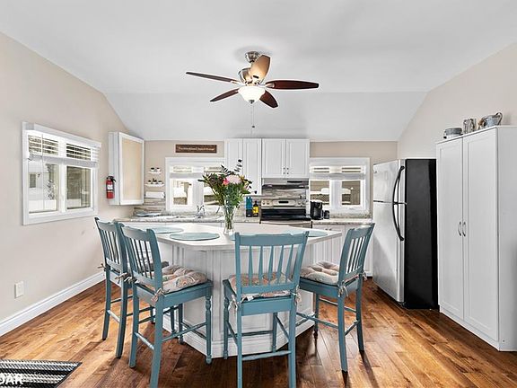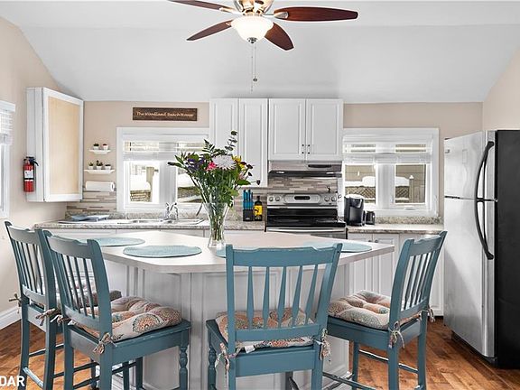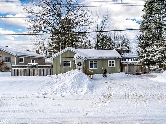 You're going to fall in love with this charming 4 season 2 bedroom, 1 bathroom cottage in Woodland Beach! The perfect getaway, just a short 3 minute walk from one of the nicest dog friendly beaches on Georgian Bay. Boasting an open concept living space and cathedral ceiling, a large breakfast bar that seats 4, a cozy gas fireplace that heats the home in the winter and a/c to keep it cool in the summer months, and its insulated for 4 seasons. With a fully fenced private backyard this is a great summer spot for fun and games with your family and friends or as an income property. Rents as a short term rental on Airbnb and VRBO June - September weekdays $225/night, weekends $250/night, October - May rents monthly for $1550/month. Stackable washer/dryer located in the master bedroom closet. Steps to Woodland Beach Market for Ice Cream or Tiny family Foodmart and LCBO, what more could you want from this turnkey cottage.