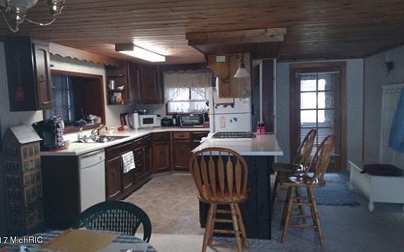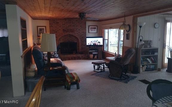 Gorgeous waterfront view from the large windows facing Rogers Pond. Inside has a cozy fireplace, knotty pine & all season room facing the water. Outside has vinyl exterior, fenced yard, nice steps & waterfront dock. This is a great home or ready to enjoy cottage. Summer is quickly approaching - Don't miss out!
