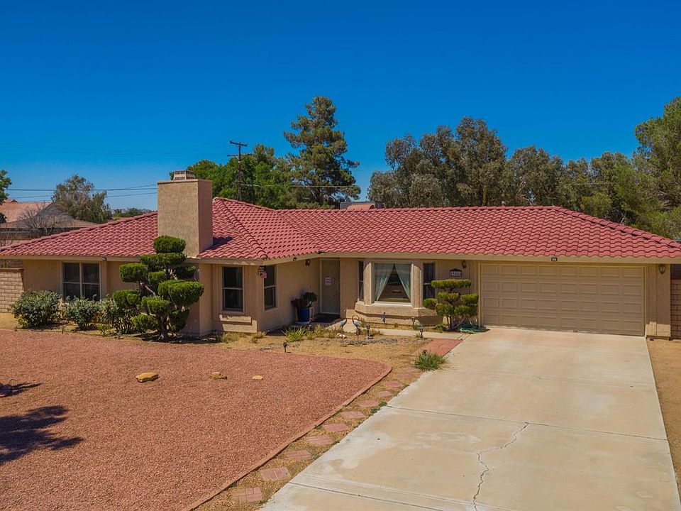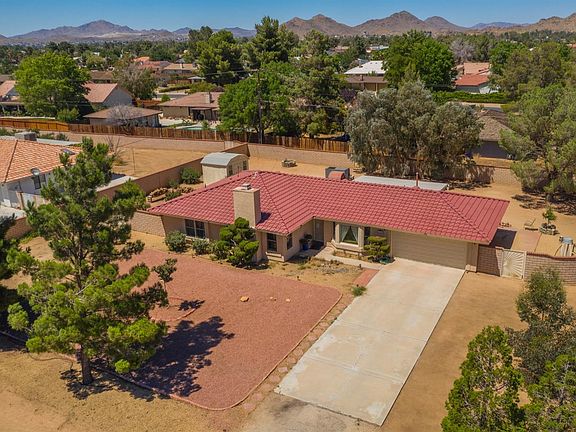 Prime Desert Knoll Location! Home sits on a large corner lot with a 6 ft block wall with 3 wrought iron gates, 3 bdrm, 2 baths, living room with cozy fireplace, tile flooring throughout, carpet in one bdrm, newer stainless steel oven/range, micro-hood, refrigerator, garden window overlooking enclosed patio with plants galore, separate laundry room. Home has 2 septic tanks, newer Heat/AC system, new patio roof with extra insulation, newer windows, big shed, RV access, easy care front rockscape, mature trees and so much room for toys.