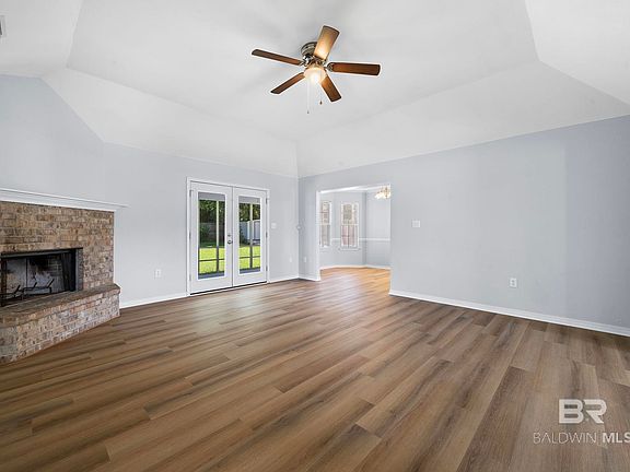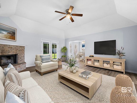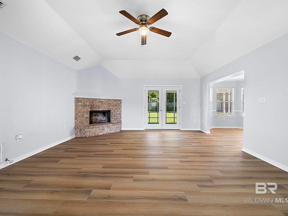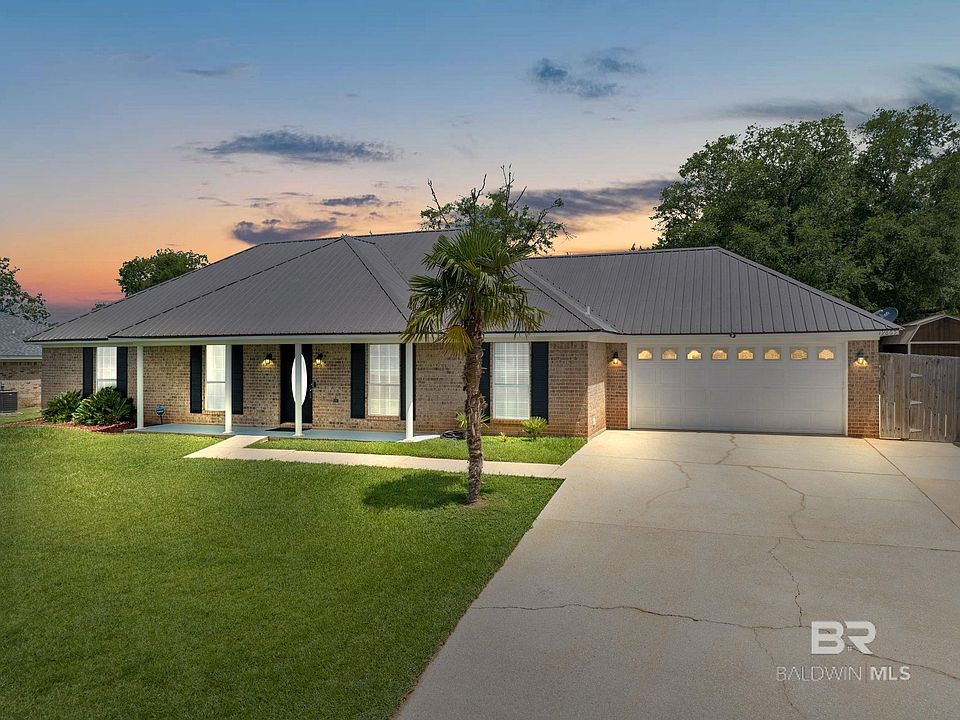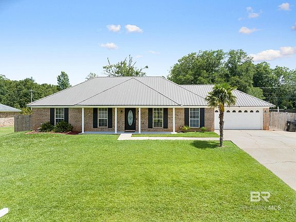 Welcome to your dream home! Step into this meticulously updated, 1841 square foot, three-bedroom, two-bathroom home complete with a garage. Everything is poised to welcome you home. As you approach, the impeccable curb appeal catches your eye with its lush green lawn, palm trees, charming window shutters, custom mail box and an extended driveway offering ample parking space.Inside, enjoy the comfort and peace of mind provided by the newly installed 2023 Trane AC system, covered by a transferable warranty. The 2022 hot water heater and durable 2013 metal roof ensure both efficiency and longevity.As you enter the home your immediately charmed with new vinyl plank flooring throughout, complemented by modern appliances, including a washer and dryer set. Granite countertops finesse the kitchen and bathrooms, accompanied by a stylish tiled backsplash and deep farmhouse sink. A formal dining area awaits your gatherings, while a cozy fireplace adds warmth to the living room. French doors open to a covered and screened patio, leading to a fenced yard adorned with lush landscaping, including a lemon tree, bottle brush, and a rose bush. The extended drive also provides access to the additional shed. The primary suite impresses with its generous size and abundant closet space. Its ensuite bathroom features granite countertops, dual vanity sinks, a beautifully tiled walk-in shower, and a luxurious separate deep jetted tub. This home offers the perfect blend of tranquility and accessibility. Conveniently located just off Highway 90 a few miles from i10, with easy access to Mobile and Pensacola, Florida, or take the Beach Express, it's only 26 miles to the sandy beaches of Gulf Shores.Contact us to schedule your private showing today! Buyer to verify all information during due diligence.