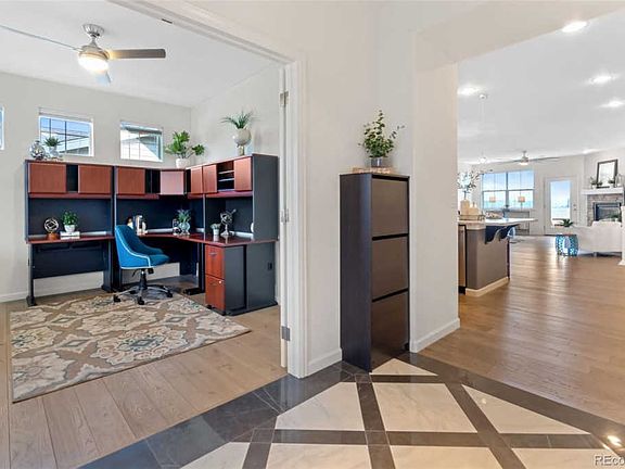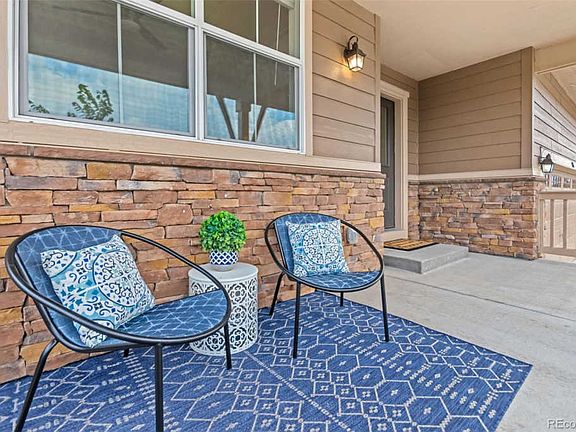 Welcome home to this modern ranch in picturesque NW Arvada. Mountain views from the covered front patio and custom tile entry with exquisite tile inlay greets to you to this spacious home built in 2017. Sparkling Owner's Entry, Large Office with French Doors, Open Floor Plan, Chef Kitchen with Stainless Steel Appliances, Gas Cooktop, Large Island, Glass Tile Backslash, Updated Light Fixtures and Pantry with Smart Lights is any cook's dream! Kitchen is open to dining and bright living room with gas fireplace. Main floor has three (3) bedrooms including Master suite with walk-in closet and private en-suite with couples shower. Basement boasts 1,100 square feet of finished space including additional (fourth) Bedroom and half bath, Media room with surround sound system, two additional bonus spaces and kitchenette. Kitchenette includes convection microwave oven, dishwasher, tile backsplash and granite countertops. Basement still has storage space and plumbing rough-in for full guest en-suite bath and additional bedroom. Set up as a remote employee and/or virtual schooling paradise with 42 interior Cat-6 lines, 5 exterior Cat-6 lines (pre-wires for security cameras), 2 patch panels for reliable internet access, and pre-wires for projector and motorized projector screen. Backyard enjoys privacy fence, landscaping and mountain views. With outdoor gas line, this backyard is ready for your personal touch. Walk to one of two community pools and fitness centers and multiple parks and basketball court. Community has two Swim & Fitness Clubhouses, six (6) parks, 13.5 miles of connected trails and on site Jefferson County Pubic School (Three Creeks K-8) and Ralston Valley High School. New retail in and coming to surrounding community area.