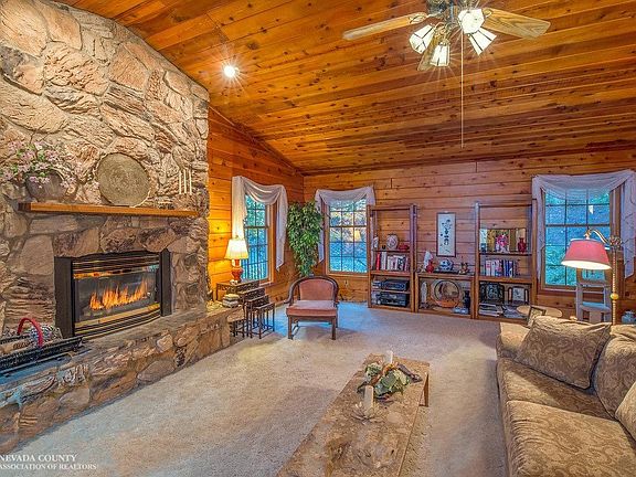 First time on market,warm inviting exposed beam log home with remote controlled propane fireplace. Not visible from road or neighbors. Hot tub in solarium deck right off the master bedroom. 2 car garage in fully insulated basement , 2 wells, 2 ponds one year around. Office could easily be converted into another bedroom. Seller moving.