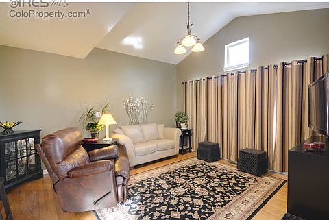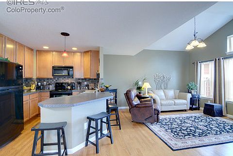 This former model home has hardwood flooring throughout the main level, elegant custom draperies in the living area, and beautiful mountain views from the loft and master bedroom. You'll love the storage in the oversized 2 car garage and fenced courtyard with flagstone patio and raised beds for gardening. The location and neighborhood can't be beat. Homeowners here have walking trails, a private dog park, and may add a membership to The Lakes at Centerra pool and clubhouse. Welcome Home!