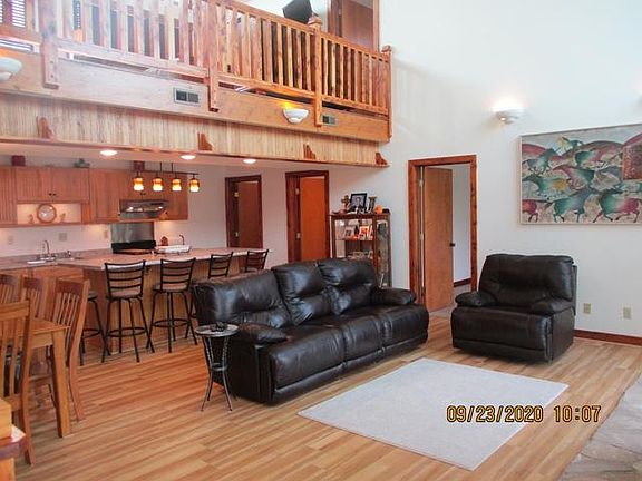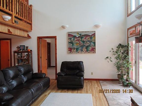 OH MY!!!! You immediately feel like you are on vacation at the Lake. The setting is serene & so inviting. Sitting on the patio and viewing the pond & landscape is so surreal. Enter into the Family Room with distinctive & appealing flooring which is throughout the open living area. Floor to ceiling stone fireplace is wood burning and the eye catcher of the entire home. Open floor plan takes in the living area, spacious dining area and amazing kitchen with very large island. Cabinetry is complimentary to the lodge-like feel. Wood steps to upper level & wood railing along loft are another ''lodge touch''. Master suite on upper level offers sitting area, bath & walk-in closet. Great pantry & laundry area. Geo-thermal heating, average monthly utility of $103.00. Will have new roof. 4.38 acres.