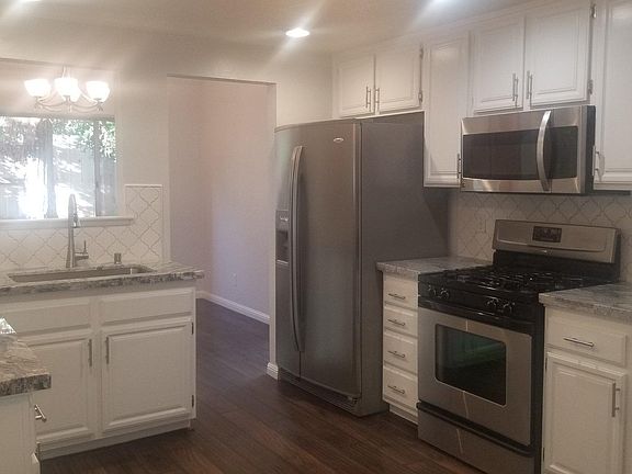 Charming spacious, two bedroom home in very desirable Pleasanton location. This home features 2 master bedroom suites 2.5 baths. Fully upgraded kitchen boasts new quartz countertops with a beautiful decorative tile back splash, and all stainless steel appliances. Laminate wood flooring downstairs. Separate dining room features great custom build in cabinets. Very spacious main master updated light fixtures bedroom with vaulted ceilings & walk-in closet. Fresh interior paint. Updated light fixtures include LED lighting. Indoor laundry right off of the attached 2 car garage. Very light and bright with vaulted ceilings. Beautifully landscaped, with a private backyard and gardener. Washer, dryer and refrigerator provided for tenants use. Open to dogs upon approval. One year lease term required. Open to dogs upon approval. Gardening services included. Tenant responsible for all utilities. Please note advertised deposits are based on excellent credit and references. An additional deposit may be required from considered applicants with poor credit and/or references.