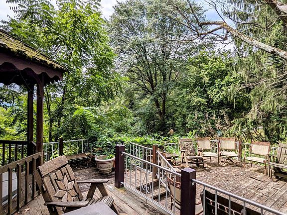 Welcome to a rare opportunity at 1987 Ridgewood Road, a secluded retreat nestled on nearly 7 acres of private, wooded land in York, Pennsylvania. This unique property offers a tranquil, remote feel while being just minutes from all the conveniences of modern living, including easy access to major highways, local attractions, and less than a mile from the excitement of Hollywood Casino. <<<ABOUT THE HOME>>> This charming 4-bedroom, 3-full-bath home, spanning over 2,300 square feet, has been lovingly cared for over the years and is ready for its next chapter. From the moment you step through the solid custom wood front door with its intricate stained glass, you'll feel the character and warmth that defines this home. <<<FIRST FLOOR>>> The living room features a heat-producing Heatilator fireplace, and picture windows, perfect for cozy evenings. Your dining room offers plenty of space and is surrounded with windows for lots of nature views (baby deer pictured), bathing you in natural light. The office/study provides quiet and comfort, with a fan-forced fireplace, multi pane picture window and custom-made cabinets and shelves. The heart of the home, the kitchen, is a chef's delight, offering a blend of functional updates and classic charm, carefully created by the current owner. It is equipped with a double oven, electric stove surrounded by brick and a dazzling backsplash, custom, gorgeous granite countertops throughout, and a unique butcher block island, all complemented by an abundance of counter and cabinet space. Custom Tiffany-style stained glass and chandeliers, also found in the china cabinet are throughout the kitchen, add a touch of timeless elegance. Rounding out the first floor are a convenient guest bedroom with lots of shelves and closet space, and a cute little full bath for convenience and guests. <<<SECOND FLOOR>>> Upstairs, the huge master bedroom suite provides a serene escape with his and her bathrooms and its decorative brick-backed fireplace. There is plenty of closets and storage space, two additional bedrooms and a sitting/dressing room to complete the second level. The home is equipped with a newer Lennox central AC unit to keep you comfortable, and additional built-in AC units on the upper level provide extra cooling on the warmest of days. <<<ABOUT THE PROPERTY>>> While the home's interior has been well-maintained and partially updated, the exterior and grounds present a fantastic opportunity for the new owner to customize and restore this property to its full potential. The landscaping, exterior of the home, and outbuildings need some tender loving care to bring them back to their former glory. Public water and Penn Waste trash service are already in place, and the septic system, with its drain field, is inspected by the township every three years. This property is a canvas awaiting your vision. Imagine creating your own private oasis while having the vibrant life of York, PA, at your fingertips. From the thriving downtown arts scene and local breweries to the rich historical sites and beautiful parks, York offers a quality of life that is second to none. Don't miss this chance to own a piece of secluded paradise with all the benefits of a prime York location. Schedule your showing today and discover the endless possibilities that await at 1987 Ridgewood Road.