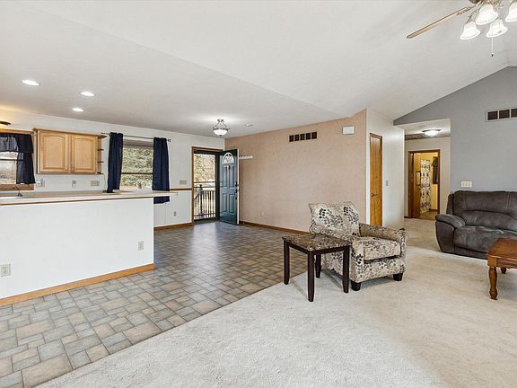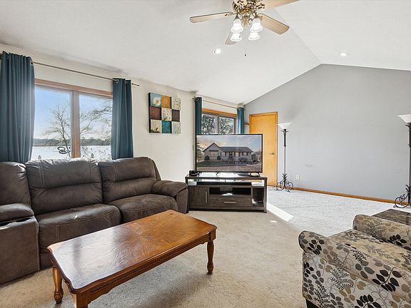 Pictures cannot capture the beauty of this lakefront home that is perfectly situated on over 3 partially wooded acres. Has over 400 ft lakefront and almost 300 ft canal front. This ranch home with walk out basement was built in 2003 and offers access, by motored boat or kayak, to a sum of 5 total small lakes that is great for all your summer fun. Home has 3 bedrooms on main level and 1 non-conforming bedroom in basement so 4 bedroom options with 3 full baths. Also, has solar panels that operate home's mechanicals. Over 2500 sq ft of overall living space. Greenhouse, detached garage, shed, fire pit and more for all of your outdoor fun and entertaining. Home is on a private road and at the end of the private road so ultimate privacy.