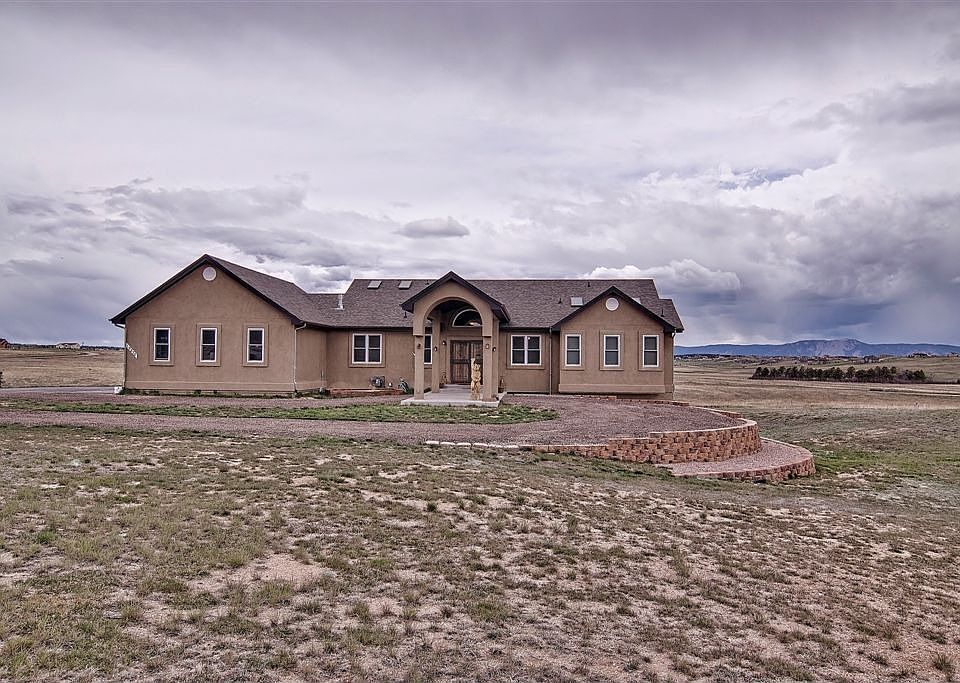 This Gorgeous ranch home has spectacular views of Pikes Peak and is situated on 7.4 acres and loaded w/upgrades. Greeted by a circle drive and a porte-cochere, this home is sure to please featuring; a sought after open floor plan w/gourmet kitchen, slab granite counters, stainless steel appliances, a 5 burner gas stove and center island. Kitchen opens to the dining area with stunning Pikes Peak views and the vaulted great room with a stacked stone gas fireplace, wall of windows and a walk-out to the covered Trex deck. The main level master is a dream come true with w/stacked stone fireplace, walk-out to covered trex deck, his & her walk in closets and a beautiful adjoining five piece master spa with a jetted tub. A second bedroom or office, powder room and a large laundry room complete the main. The fully finished walk out lower level features a large family room with a wet bar area, 9 ft ceilings, three additional spacious bedrooms; two of them have adjoining baths making them ideal for quests or a mother-in-law suite. Multiple outdoor living spaces with breathtaking mountain views, new A/C, new roof, new paint and new asphalt on the circular driveway.....just to name a few. A wonderful place to call home!