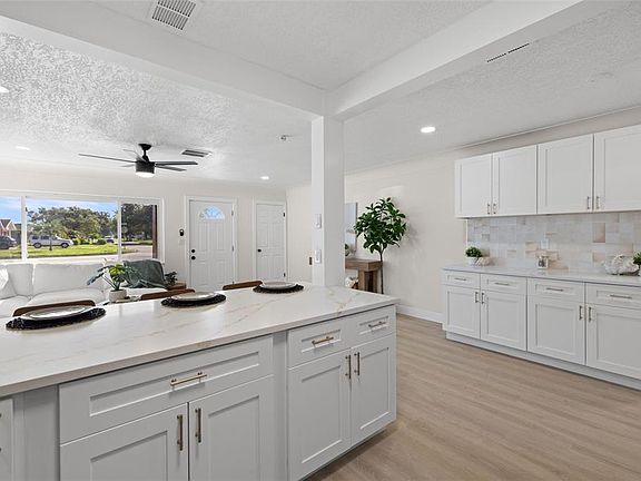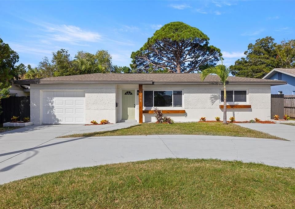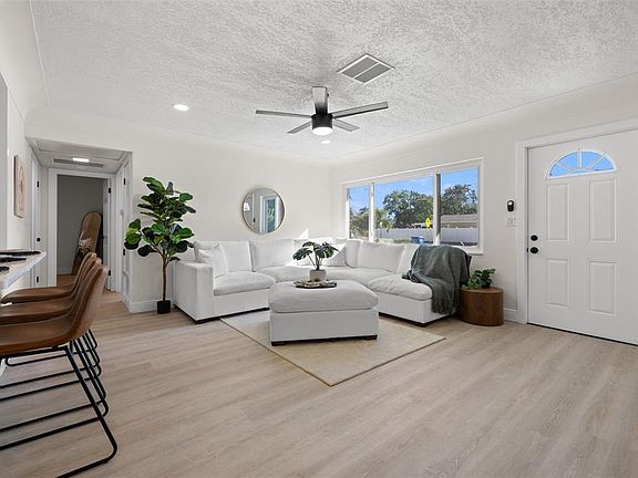 NOT AFFECTED BY STORMS LAST YEAR. Flood Zone is due to a nearby neighborhood pond. Welcome to this updated 3 bedroom, 3 bathroom home offering modern comfort, two living spaces, and a prime St. Pete location! Step inside to discover a bright open living space perfect for entertaining or relaxing that seamlessly transitions to a tastefully styled kitchen along with a dry bar and featuring a new range, range hood, and dishwasher. The home offers multiple dining options, including a formal dining area for sit-down dinners or casual countertop seating in the kitchen—perfect for gatherings large or small. The massive primary ensuite is a true retreat, offering a dedicated seating area and two walk-in closets, providing the perfect blend of space, comfort, and functionality. The one-car garage comes equipped with a mini-split system that allows for the added convenience of a home gym, workshop space, or simply an air-conditioned storage area, giving you extra flexibility for your lifestyle needs. HVAC unit 2025 with 10 year transferrable warranty. A spacious circular driveway provides ample parking and enhances the home’s welcoming curb appeal. Located just 10 minutes from vibrant Downtown St. Petersburg, you’ll enjoy easy access to the St. Pete Pier, Tropicana Field, and Central Avenue’s dining and nightlife. You’re also 15 minutes from Treasure Island Beach and close to Tyrone Square Mall and the Grand Central District!