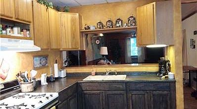 Seclusion at it's best! Beautiful wooded 1.75 acres. Home needs some TLC. The kitchen and LR have been remodeled, and the large eat in kitchen has nice countertops, deep sinks and plenty of oak cabinetry. The deck off the back of the home looks out to the beautiful wooded view. Home is a trailer that has been added onto.