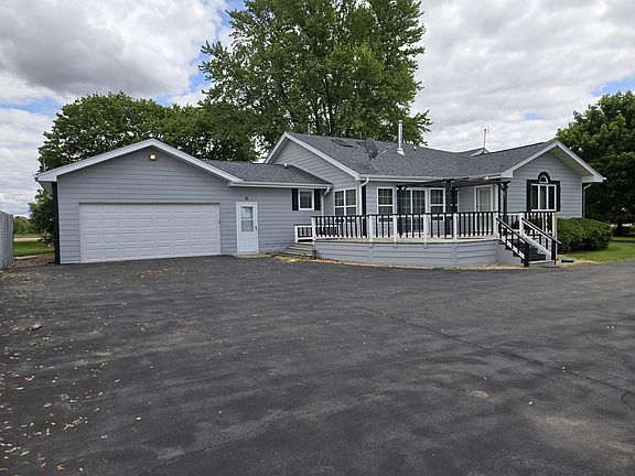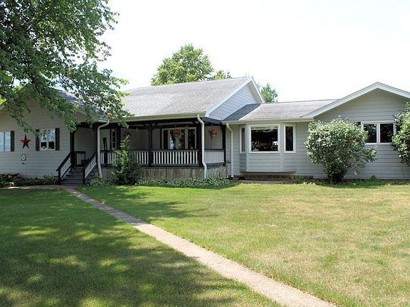Welcome to this charming 4-bedroom ranch-style home, nestled on more than an acre of serene rural land, perfectly set amongst mature trees that provide both beauty and privacy. As you step inside, you're greeted by a spacious Great Room featuring a stunning stone wood-burning fireplace, ideal for cozy evenings with family and friends. The cathedral ceilings add an element of grandeur, making the space feel even larger and more inviting. Adjacent to the Great Room, you'll find a lovely three-season enclosed porch where you can relax and enjoy the picturesque views of your expansive backyard. Step outside onto the large rear deck, perfect for summer barbecues or quiet mornings with a cup of coffee along with a peaceful and serene front porch. The home boasts laminate flooring in both the dining area and kitchen and new luxury vinyl throughout the rest of the house providing a modern touch and easy maintenance. You'll appreciate the convenience of first-floor laundry, simplifying your daily chores. The attached two-car garage is complemented by a heated detached 21/2 car garage, offering ample space for vehicles, tools, or hobbies. Recent updates enhance the home's functionality and efficiency, including a new furnace installed in 2012, a water heater from 2015, a new well pressure tank from 2012, a new septic tank in 2023, a new roof on all structures and fresh exterior painting in 2024. For added peace of mind, a complete radon mitigation system has been installed as well as a new septic tank and some new Anderson energy-efficient windows. This house features solid oak 6 panel doors and solid wood siding. The primary bedroom is a true retreat, featuring an ensuite bathroom and a spacious walk-in closet. With a partial basement providing additional storage options, this home perfectly balances comfort and practicality. Don't miss the opportunity to make this idyllic property your own, where nature meets convenience and modern living.