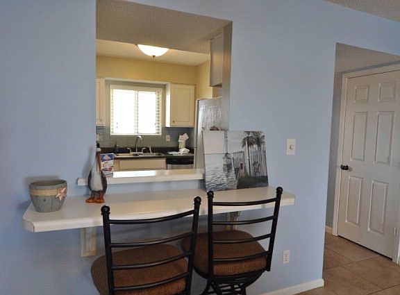 Comfortable 2-bedroom, 2.5-bathroom that sleeps six is located on the 2nd floor of Summer House West and features lagoon views from private balcony. The condo has a private boardwalk beach access to the Gulf, which is a short walk across the street. Living room has queen sleeper sofa, large flat-screen television, stereo system and access to the lagoon-View balcony. Galley-style kitchen is fully equipped with all major appliances.Master bedroom features a Queen-size bed, flat-screen television, and a private balcony, with a view to the Gulf. Single-sink vanity with combination tub and shower in the master bathroom. Stacked washer and dryer conveniently located inside condo unit. Enjoy a porch swing and additional seating on the private balcony overlooking beautiful views of the lagoon. Nice outside owner storage unit under near the lagoon pier.