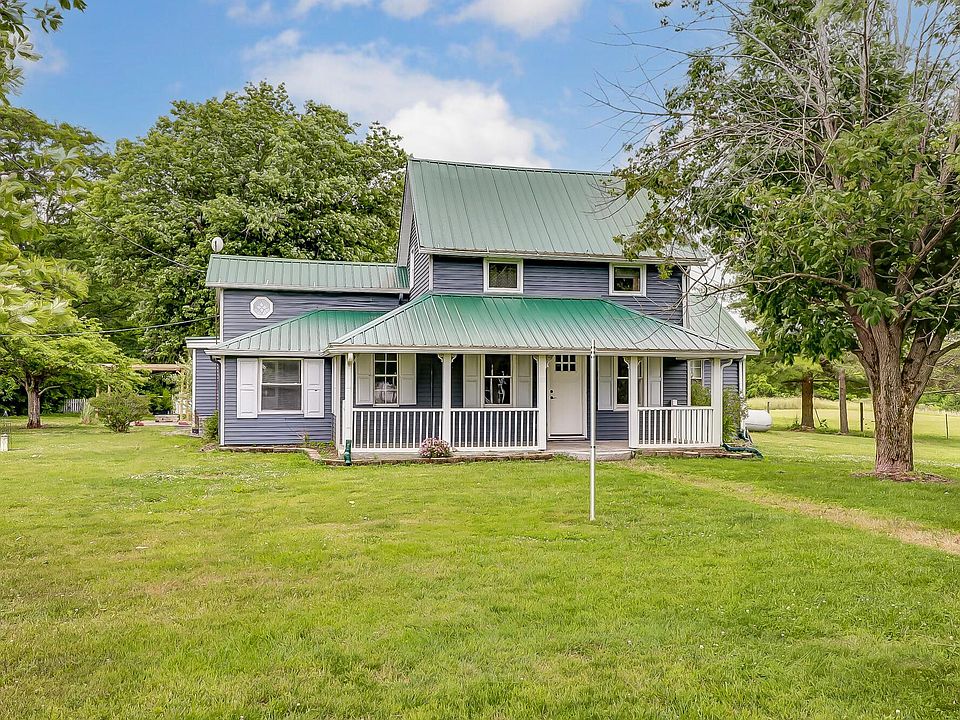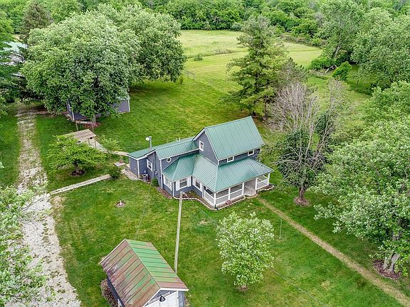 Charming farmhouse situated on over 5 acres less than a mile to Deer Creek State Park! This home has been beautifully renovated including vinyl flooring, granite counters, newer kitchen appliances & cabinets, furnace & ductwork in 2021. Possible 3rd bedroom upstairs or bonus room. The inside is so pleasant but just wait until you experience the outside featuring a 24x48 garage, 12x18 garage, 32x13 building, 8x16 shed and a 40x60 barn which formerly housed horses. Barn has electric and an insulated water hydrant, tack room is still there but stalls have been removed but could easily be added again. Fenced pasture is ready for the livestock of your choice! Relax on the patio with built in firepit and enjoy the overall tranquility of the property. True paradise!
