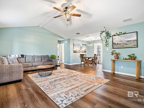 Welcome home! This adorable ranch style home on 1.3 acres in Silverhill is just what you've been looking for. Featuring 3 bedrooms, primary en suite and split floor plan, large open living room, eat in kitchen, and laundry room. What more could you ask for? Luxury vinyl plank flooring in all common rooms and warm carpet in the large bedrooms. Primary bedroom has a large walk-in closet, stand up shower and linen closet. Outside find a fully fenced yard with a gate at the entrance to the driveway and a large storage shed. Enjoy some sweet tea or coffee on the front porch with some rocking chairs! Get it before it's gone! Call your favorite agent today for a private tour.