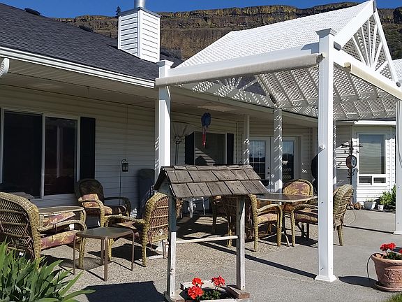 Spacious open concept rambler of level landscaped 2+acres w/auto sprinklers, offer Banks Lake, the Coulee and beautiful surrounding territorial views. The amazing sunsets never get old! 4 BR/3 BA home w/2 master BR/BA kitchen w/eat in area-living room w/propane fireplace-dining room provide wonderful great room+french doors lead to outdoor living space complete w/pergola cover and your own hot tub. 2 car extra large att garage, incl RV pkg w/elect/dump+massive 1,500SF det gar/shop. A must see!