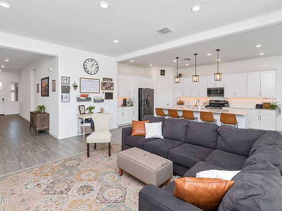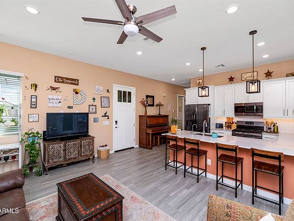 Terrific multigenerational or dual living situation - Lennar's popular Next Get 'Home within a Home'. The Main home is a spacious 1967' feet with three bedrooms & two baths; the private, attached living suite is 682' with separate entrance, living area with kitchenette, bedroom with walk-in closet & bath, stacked washer/dryer, Plus one-bay garage. Finishes throughout include white cabinetry, premium/taller cabinets, quartz countertops, premium flooring & carpet, 12x24 tiles. RO system in both. Beautiful backyard for relaxing around the gas fire pit, under the sun-filtering pergola, remote control water feature, raised planter beds, fruit trees. Located on a desirable cul de sac street, with one of the large neighborhood parks right there!