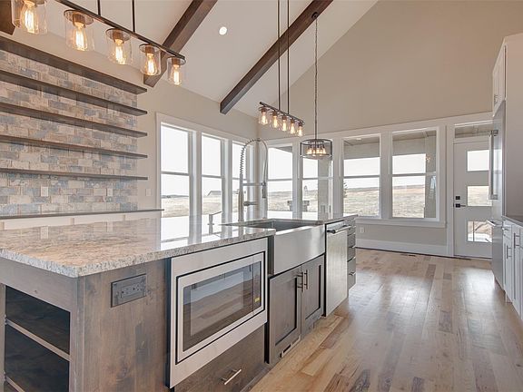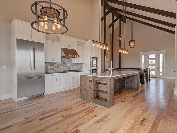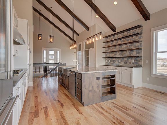 Dream house in the making. This five bedroom rancher features an elegant yet flexible floor plan in on 2.5 acres in desirable Kings Deer. Stunning views. Vaulted and beamed ceilings in the main living area. Gourmet kitchen has quartz countertops and Thermador appliances. The private owner's suite features a gas fireplace, plus a large 5-piece bath and walk-in closest. Formal and informal dining, or use the formal dining for an office. D-38 schools. The large and bright main-floor laundry space has room for a second refrigerator, plus a bench and drop-off station for shoes and bags. The lower level has a walkout to the lower patio, a fireplace and a galley kitchen complete with refrigerator, microwave and dishwasher. There is plenty of storage available in the mechanical room, and the lower patio is pre-plumbed for a gas fire pit. The upper composite deck has recessed can lighting and is accessible from the kitchen dining area and the master bedroom. Radon mitigation system installed.