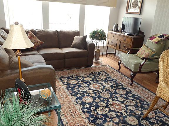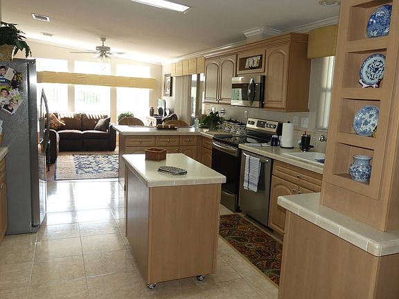 Beautiful 2006 Palm Harbor 3 Bedroom Home. Situated on a lovely water lot this home has it all! Enjoy the nature views from your rear deck or inside your lanai. Home features 2 separate living areas, master bedroom with walk in closet and bath with garden tub and double sinks plus walk in shower. This is a split floor plan with a spacious kitchen with plenty of counter and cabinet space. Paver driveway with plenty of under carport parking. This is a must see home. Other features of this lovely home are: Tray ceiling, ceiling fans, laundry room, 2 guest bedroom with guest bath with tub/shower combo, rear deck overlooking a very large pond, carpet, tile and laminate flooring. Contact the Cypress Lakes Sales & Information Center for more information and showing requests.