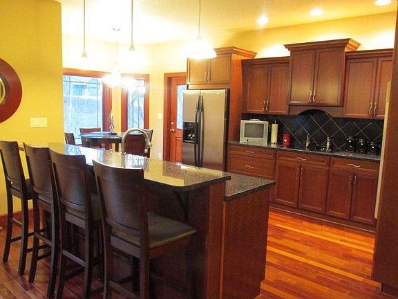 A very special home for a special family! Soaring ceilings welcome you into this beautiful custom home in Deerwood estates located on 1.47 wooded acres with a creek behind. 4 bedrooms, 3 1/2 baths, Granite , gleaming cherry wood floors and kitchen cabinets, main floor laundry, stunning Master bath with jetted tub and walk-in shower. Great home for entertaining with a huge walk-out family room w/lg. wet bar, nego. pool table, 3 patios, 2 fire pits, a bridge over the creek, exercise room, storage room can be accessed from outside, immaculate 3 car garage w/floor drains and good storage. Negotiable hot tub, extensive 5 1/2' rock wall from front to back. Built by Steve Hart. Call Molly Johnson 571-2590 to see.