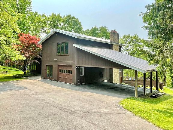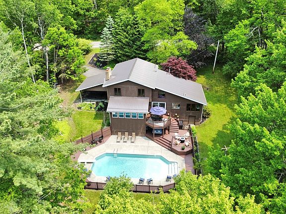 Tucked away on a serene 1.3 acre lot, this beautifully updated 3 bed, 2.5 bath contemporary home offers the perfect blend of modern amenities & peaceful outdoor living! Major updates include 5 year old roof, all new custom energy-efficient Andersen wood windows throughout plus new Pex in-floor radiant heat. The open concept layout of the 1st floor features an updated kitchen with solid surface countertops, newer appliances, large dining room with propane stove, & cozy living room with wood-burning insert fireplace. The 3 season room is surrounded by gorgeous views. There is also an office/mudroom area with it’s own separate entrance. The 2nd floor has a full bathroom, 3 bedrooms, one with it’s own private bath with washer/dryer & a walk-in closet. The walkout lower level features a large family room perfect for Sunday football. The utility room & workshop offer plenty of storage. Outside, you’ll find a multi-tiered deck that leads to an in-ground pool perfect for outdoor entertaining.