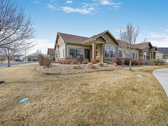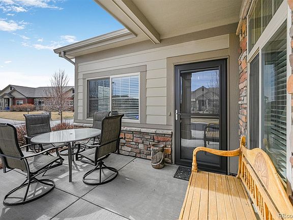 Welcome to this lovely ranch style home in the Encore Great Plains community, with wheelchair accessibility and no stairs. This home is in like new condition, low Maintenance 2-bedroom 2 bath Applause Floorplan ranch home has everything you need on the main floor. Enter into the open concept living with large kitchen island, kitchen includes all appliances, pantry storage. You’ll love entertaining family and friends in the spacious kitchen and dining room that opens to the living room. with laminated plank hardwood flooring. Wider hallways and doors as well as zero step entry, this home is designed as ANSI Accessible. The living room is wired with easy access to hook up TV and cable. The owner’s suite has laminated plank hardwood flooring and includes a large primary bath with a large walk-in closet for ease of access. Nice secondary bedroom for study/den or guests. Enjoy your coffee or tea on the spacious front patio at the front and is ideal for relaxing and grilling out. An oversized 2 car garage has extra room for storage. The driveway is accessible from the street, does not have a curb. There is a sidewalk leading to the front door. Perfect home for the active lifestyle buyer. You can spend your free time at the community club house, fitness center and swimming pool where you can meet your neighbors. Adjacent to wonderful Great Plains Park and trails and close to the Southlands for shopping, movies, dining, events, DIA airport, E-470. The Encore at Great Plains is an active community. This beautiful home makes living convenient with zero maintenance exterior.