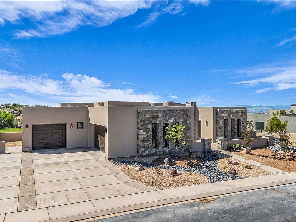 Newly built luxury home in The Ledges of St. George! This 6,074 SQFT custom build combines high-end craftsmanship with exceptional functionality. Featuring 5 spacious en-suite bedrooms, a chef's kitchen with top-tier appliances, granite countertops, and custom cabinetry, plus soaring ceilings and expansive windows with panoramic views of red rock cliffs and the championship golf course. The owner's suite includes a sitting area, spa-like bath with soaking tub, dual vanities, and walk-in closets. Additional highlights include a dedicated dining area, oversized laundry room, and 3-car garage. Enjoy a private pool with integrated spa and custom cover, a full-size pickleball court, fire pit, and seamless indoor-outdoor living—all in a secure, gated golf community near Snow Canyon.