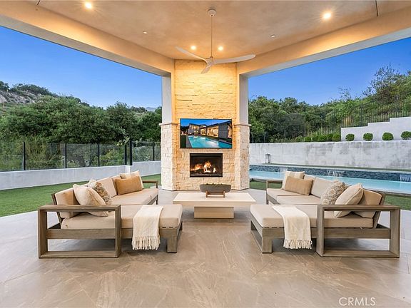 Magnificent NEWER custom pool estate on more than 3 private acres in a gated canyon of natural beauty offers stunning modern Transitional architecture combined with the highest quality construction and materials to create a timeless masterpiece. Simply stunning as you enter through the towering entry, this "magazine" quality home will take your breath away with 20’ soaring ceilings in a massive 1200 sf Great Room with towering fireplace and elegant stone flooring that opens through multiple disappearing doors to a 1750 sf covered loggia w/ outdoor fireplace. Offering 7700 sf of covered indoor/outdoor living space creates the ultimate entertaining venue with resort style pool and spa, outdoor kitchen, BBQ grill, pizza oven, playground for children, fruit trees/garden and a dog run. Unrivaled, panoramic views of unspoiled open space, native plants, majestic oaks and hillsides reminiscent of the southwestern landscape surrounding Sedona. The main level also includes a media room, climate controlled wine room w/bar, guest suite w/ bathroom, and powder room. The gourmet kitchen offers a commercial Wolf range, double Sub Zero refrigerator/freezer, breakfast nook, covered loggia, center island breakfast bar, dual walk-in pantries, quartz counter tops and slab backsplash that extends to the ceiling. Ascend to the second level with wide plank wood flooring, open hallway overlooking the Great Room and 4 en-suite bedrooms. The elegant master suite offers spectacular mountain views from a covered terrace, cozy fireplace, private stairs to the pool/spa and an opulent bathroom with soaking tub, heated floors, dual toilets and closets. 3 additional bedrooms w/ en-suite bathrooms plus a laundry room completes the upper level. Other features include Vantage home automation system, fully fenced yard, abundant storage, 4 car garage and paver-stone driveway. The Oaks at Trabuco consists of 9 custom equestrian home sites behind a private gate on 34+ acres of land. Only 5 miles from the 241 Toll Road w/ easy access to shopping, restaurants, work centers and airport. Rare and unique opportunity to embrace luxury living, quality lifestyle and inspiring surroundings rarely found anywhere in Southern CA.