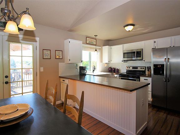 3 bedroom, 2 bath with curb appeal and landscaping. Bamboo floors throughout, open concept in main living area, vaulted ceilings, French doors, remodeled kitchen with farmers sink, island and tiled back splash. Fireplace with mantle in living room. New paint and doors! Fantastic deck with views perfect for entertaining family and friends. Fenced in huge backyard with mature trees, plenty of room to run and play. Book your showing today!