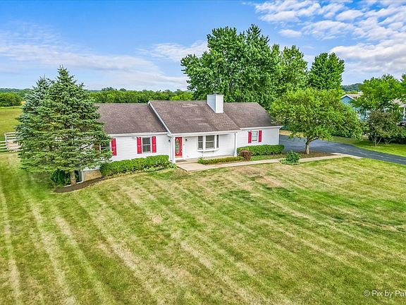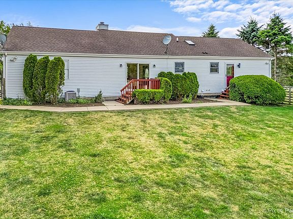 Idyllic country living with nearby conveniences! Imagine sipping coffee on one of your decks just off the kitchen or master bedroom, watching the sunrise, your horses (or other animals) grazing, and other stunning unobstructed views! This unique and hard to find 5 acre equestrian farmette offers true ranch living with 3 BR, 2 BA and main floor laundry! There is a heated barn with newly added matted stalls, frost free hydrant, electric and gas furnace. The barn connects to a newly added shelter with storage and fans, which connects to the huge dry lot and acres of fenced in pasture for grazing or haying. There is so much potential! You are living in the country, yet are minutes from town amenities and the Metra line. Rush Creek conservation area with hiking and horse trails is right across the wayside . Being very close to both Woodstock and Lake Geneva, this location offers endless opportunities for recreation and culture. The recently painted ranch-style home provides an open concept design with a spacious and welcoming atmosphere. The hardwood floors, west facing bay window, and the gas log fireplace add warmth and charm. Something very special about this property - the furnished basement has private exterior access with a full bathroom, a kitchenette, spacious closets and more! This could be set up as an in-law arrangement, or convenient space for guests and family. Additionally, there is a storage shed for equipment or other storage needs. Low taxes! A truly great property! Back on the market only due to buyer's financing. Quick close possible.