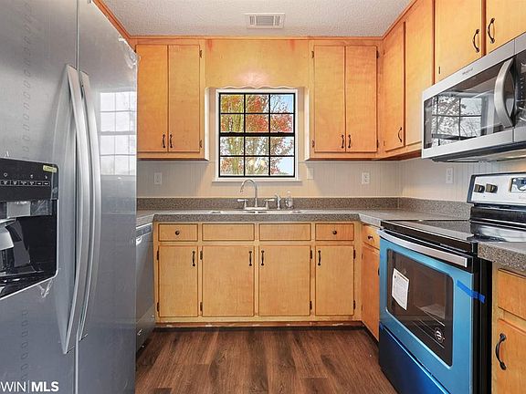 Cute country home, situated on 1 acre, in south Silverhill! Home has been completely remodeled with new roof, new HVAC, new flooring, new interior paint, new light fixtures, new stainless appliances, and new fence down one side of the property. The living room has high vaulted ceilings and a woodburning fireplace. There is a nice front porch, as well as a back porch, for relaxing.