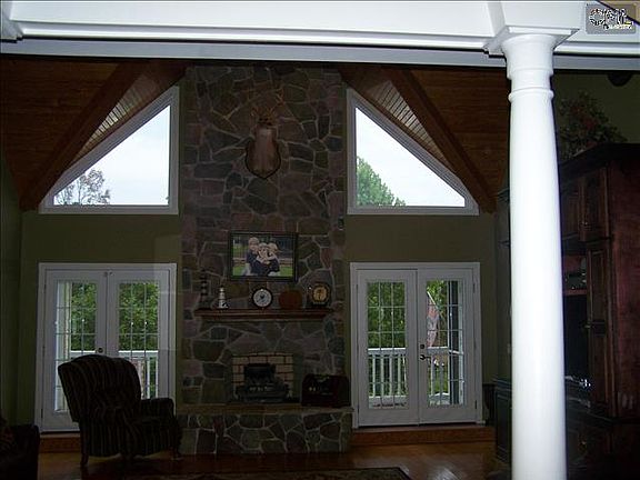 Built by a contractor as his personal residence, this 3600 sq. ft. beauty is stocked with special features such as comfortably sized rooms and a pool. The large pond is half owned. The driveway is shared with two other homes and is deeded and surveyed. Mature trees surround the property and provide separation and privacy for each of these properties. The two-story fieldstone chimney-chase faces the pool area while, in the great-room, the wood-burning fireplace and a massive entertainment center provide defining accents for a striking and inviting great/family room. The kitchen boasts granite counter tops plus high quality appliances, spacious eat-in area (with fireplace) and adjoining formal dining room. There are two master suites.