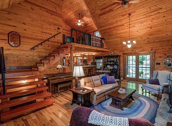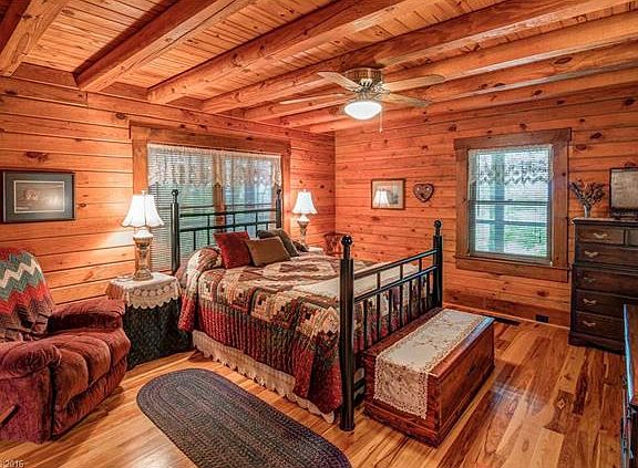 Spectacular and impressive luxury log home living w/ 20 acres of privacy, located in Candler (short drive to Asheville). Panoramic views of Pisgah and Mt. Mitchell. Home boasts extremely high quality building methods, root cellar, storm shelter, huge basement (can be converted to additional living space), enclosed back porch w/ skylights, heat & AC, waterfall, streams, caves, and more. A unique treasure!