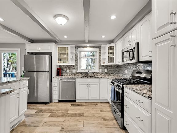 2017 completely renovated residence ready for you to move in & enjoy! White kitchen featuring newer appliances, gas cooking, granite counters & floors that flow to dining area & sunny family room w wood burning fireplace & bay window. Three bedrooms w refinished floors & 2 newer baths. Primary bedroom suite features oversized tile shower w rainhead. Lower level offers game room, office area, laundry, storage & 2 car garage. Additional 2017 updates include: vinyl siding, windows, patio door, 96% high eff. gas furnace, central air, septic system, H20 heater, garage doors & fixtures. New lighting, insulation, bluestone steps/walkway. Huge deck overlooking private & professionally landscaped yard. Super close to downtown's #1 schools (per Niche), EMC Park, dog park & walking trails, farmer's market, Ashland commuter rail, Startline Brewing company & the beginning of Boston Marathon.