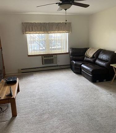 Upgraded kitchen and bath. Clean and light filled. Spacious living room. Ample closets. Storage area available. Laundry available in basement. Hardwood under carpets. 2 parking spaces for unit. Great location, convenient to shopping, transportation and highways.