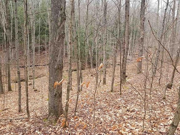 As you enter the property from the front field the topography gently slopes down from the road into established open hardwoods and then down into a valley where there is a creek and an old hunting cabin. There is a small pond just up the hill from the cabin with some mature apple trees to attract wildlife. Overlooking the pond and the small cleared area is a tower blind with a true stair case. On the east side of the creek the topography gently slopes uphill into open hardwoods with some thick areas that offer bedding for whitetail deer. When walking the property it would be hard not to notice the dozens of Buck rubs and scrapes throughout. There are several maintained old logging roads and a separate driveway with a right of way across a neighbor's property that makes accessing the property a breeze. The woods offer a nice mix of hardwoods and pine containing species of Oak, Hard Maple, Ash, Birch, and Hemlock with some mature timber. Power is available at the road.