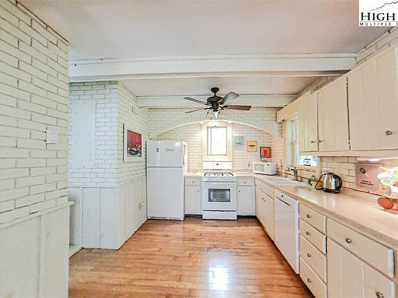 Don't miss this charming 3 bedroom 2 bath gem. It looks like an A-Frame but doesn't feel like one. The owner has lovingly updated the home but kept its rustic charm. Beautiful wood floors, brick accents in the kitchen, one level living for you and guest bedrooms on the second floor. All the benefits of living in a city such as city water and sewer, cable tv and internet through Spectrum, but a small town to fall in love with. The home sits on .61 acres on the top of a hill with no houses compromising the seasonal view. You have a 1 car carport but long driveway for your guests. There is an extra storage building on the edge of the property to the right. Walking distance to the Miracle Grounds Coffee Shop & Cafe, the post office and the Blair Frailey store. Come see it today!!