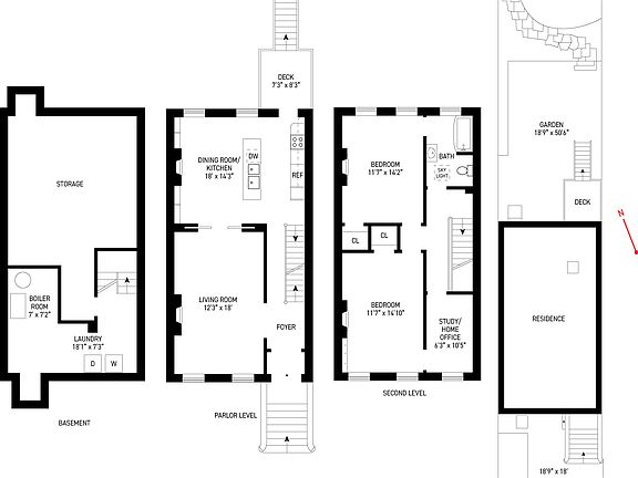 SHORT TERM FURNISHED RENTAL BEING OFFERED FROM JULY 1st THROUGH SEPTEMBER 30th 2025. Welcome to 199 Bergen Street, a beautiful, classic brownstone located in the heart of Boerum Hill. As you walk up the stoop and enter the house through the mud room and foyer, you are greeted by a large, south facing, living room featuring original crown moldings, hardwood herringbone floors, and an original mantlepiece. Towards the back of the house, through the original pocket doors, you will find the dining room and kitchen rounding out the ideal townhouse living layout. The dining room is lined with floor to ceiling bookshelves, while the kitchen features an island, dishwasher, and range stove. Off the kitchen, there is a door to the deck, which has a staircase down to the peaceful, landscaped garden. Upstairs there are two large bedrooms plus another room that is perfect for a home office or nursery. Both bedrooms feature beautiful mantle pieces and great natural light. Also on this floor is the full bathroom that is assessable both from the rear bedroom and hallway. The apartment also has access to a washer dryer, which is located in the basement. The basement also has a large storage room perfect for storing suitcases etc. Please reach out to schedule your viewing today.