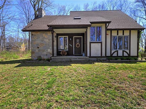 CUSTOM-BUILT, ONE OWNER HOME! Wonderful country setting for this special Tudor Cape. Set back from the road and situated on a private acre of land, this home offers an open concept, perfect for entertaining. Living Room with a gorgeous floor to ceiling Stone Rumford wood burning fireplace, Dining room with French doors leading to a relaxing sun porch with a wall of windows to enjoy nature at its best. Eat-in-kitchen with granite countertops, newer appliances with a double oven and laundry room. First floor master bedroom with a tastefully re-molded full bath and a walk-in-closet. Hardwood floors through-out the 1st floor. Upstairs is a charming landing with an attic for storage, 2 additional bedrooms and full bath. Newer roof and furnace. A partially finished basement completes this one-of-a-kind home. Great location with that country feeling yet minutes to main road and Rt.8.