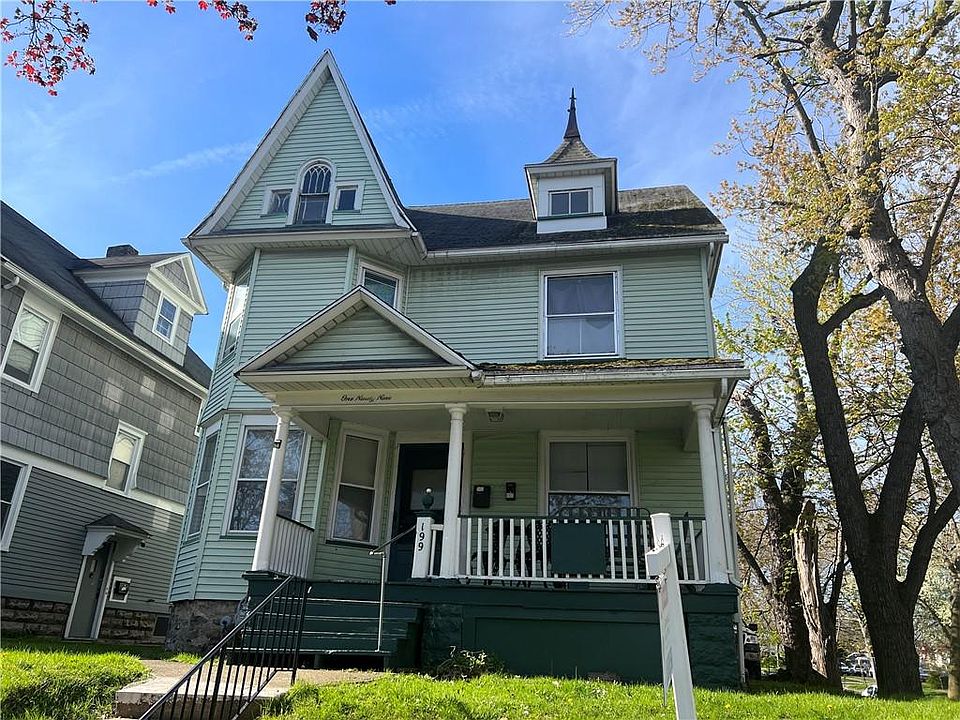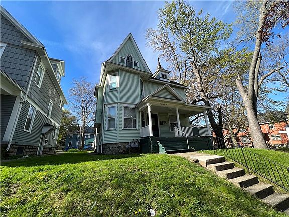 Another Rockin' Rochester investment property. Boston Style Duplex on a large corner lot with detached garage. Great investment opportunity in the Maplewood Neighborhood. Lower unit has 2 bedrooms, a large open porch, Eat-In kitchen & Living Room. Upper unit is 2 bedrooms, enclosed screened porch, a separate side entrance and finished attic area. 2 recent furnaces, separate utilities. GAI of $17,400. Upper unit now vacant and perfect for an owner occupant. Seller will only supply an existing survey with an affidavit at closing (at no charge). Buyer will need to pay for a new survey if they desire one.