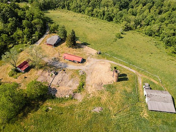 Sprawling 82 acres with stunning view of the surrounding countryside. The land is a mix of flat fields and rolling hills with plenty of space for livestock or farming. The possibilities for outdoor recreation are endless, with ample space for hiking, ATVs and horse back riding. This property offers two single family homes, garage with attached efficiency apartment space and large house barn. The homes will require some TLC to be brought back to life but could be transformed into a homestead and rental properties. This parcel would also serve well as developmental land and is backed to another already developed community which you can spy off in the distance. OGM Rights convey with sale.