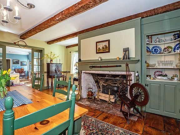 The house sits on 7.4 acres of land. The original three level house is 'post & beam' construction with original pegged beams extending from front to back.The kitchen has been updated with Kraft Maid Cabinets,has original pegged beams and breakfast nook with closed hearth. A very peaceful area to have coffee and work out your days chores or just relax.Wonderful, warm, old world charm, abounds.Pride of ownership, as well as nostalgia, is throughout this 18th century home.The dining room (originally the living room) with a large non-functioning fireplace has the original wide board floors.There is the original 'Barrel Cabinet' for displaying fine china and crystal.Two glass pocket doors open into the 2004 addition with a 23 x 23 sf. living room, Master bedroom en suite and add'l half bath.The center piece in the living room is a 12 ft. wood panel fire surround, salvaged from the 1785 Cornelius Van Wyck house which stood behind the Hopewell post office.This fire surround is described and pictured in Helen Reynolds 'Historic Houses of the Hudson Valley'.The fireplace is functional and surrounded by Dutch tiles.The view from the sliding glass doors looks down the fields and onto Hosner Mountain.A separate cottage apartment is on the east wing of the house, circa 1800 and updated in 2003. It consists of a kitchen/dining area and living room on the first floor.The kitchen cabinets are Hickory.The living room contains the original open fire hearth with an offset Dutch oven.A winding staircase leads to the upper floor where there is a new large bathroom with shower and bedroom with original wood floors,beams and a private deck overlooking the barn and horse pasture.Heated Detached 2 car garage with 2nd furnace.And the list goes on for this fabulous, updated, 18th century home.